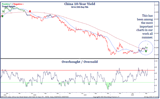 Outside the U.S., China led a strong rally in emerging market stocks. Beijing is beginning to target domestic consumption with policy easing, a necessary antidote given extremely high savings rates and a dis-engaged consumer. For example, the government has announced subsidies for families with young children and may introduce tuition-free pre-school education. Despite sluggish economic data, Chinese 10-year bond yields have been rising, suggesting economic growth will improve and deflation will subside.